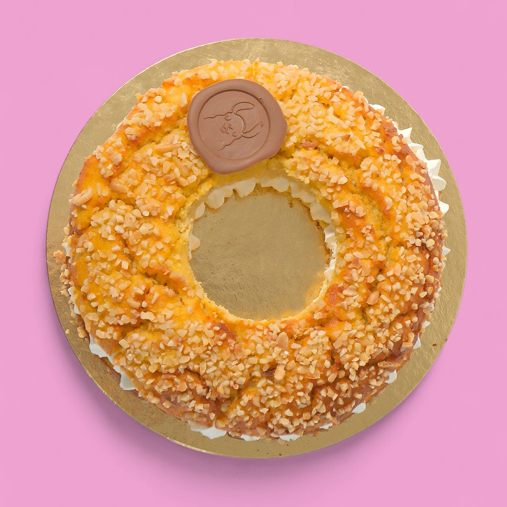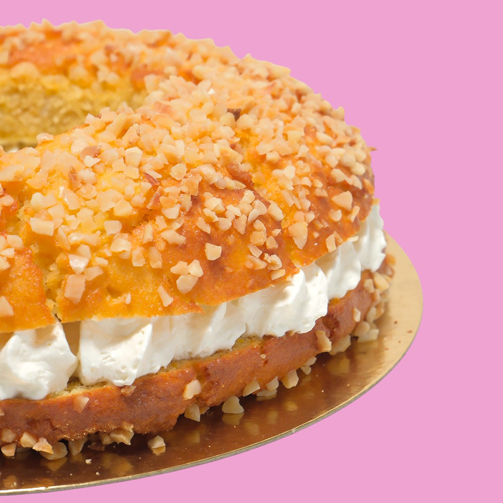 Nuestro Roscón de Reyes es una versión saludable del clásico navideño, elaborado con harina de almendras y harina de coco, y relleno con una crema más ligera que la tradicional, perfecto para disfrutar sin culpas en estas fiestas.